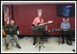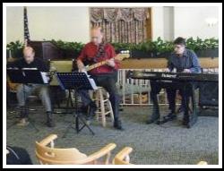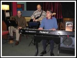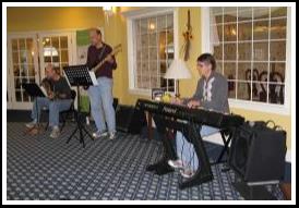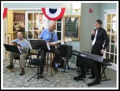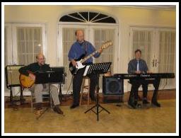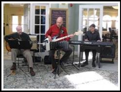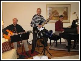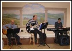 Piano, guitar and bass playing jazz standards |