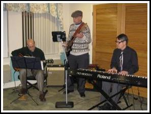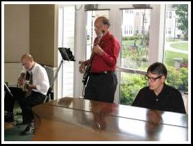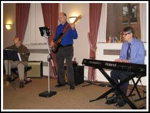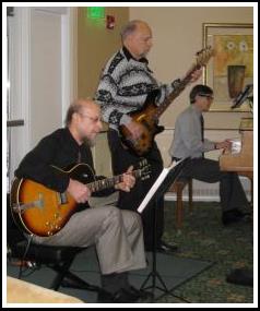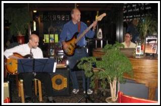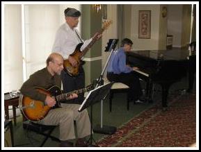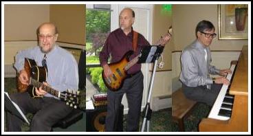 Piano, guitar and bass playing jazz standards |